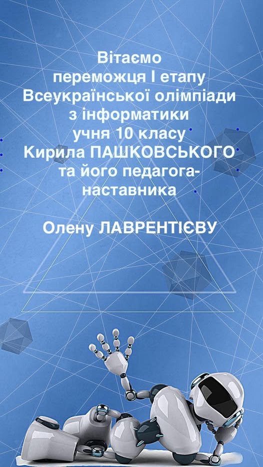 - ПЕТРУК Ярослав Ігорович, учень 9 класу (вчитель – ПОЛІЩУК Валентина Сергіївна);
