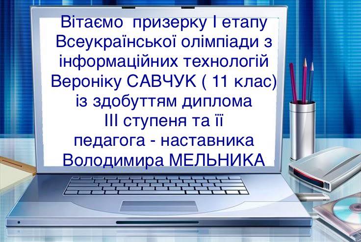 - Галагуз Ілля Едуардович, учень 10 класу (Вчитель – Вовк Роман Михайлович).