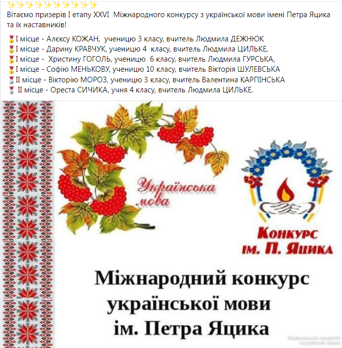 конкурсу з української мови імені Петра Яцика. Конкурс відбувся з