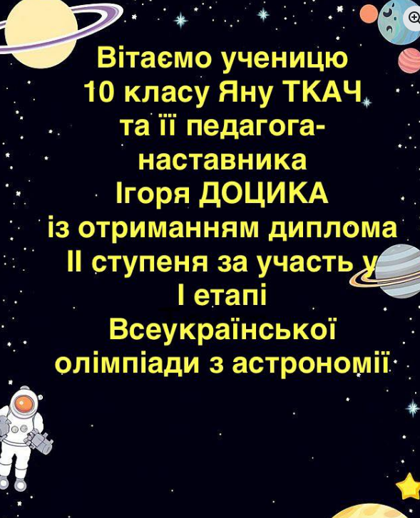 - ТКАЧ Яна, учениця 8 класу (Вчитель – ДОЦИК Ігор Іванович);