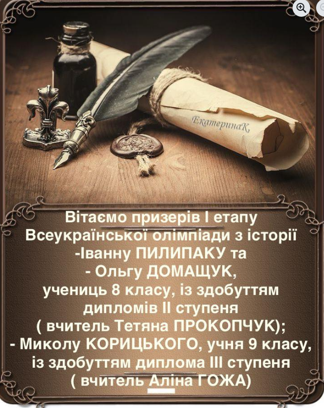 - Ціпан Дарія Юріївна, учениця 9 класу (Вчитель – Бобчук Тетяна Михайлівна);